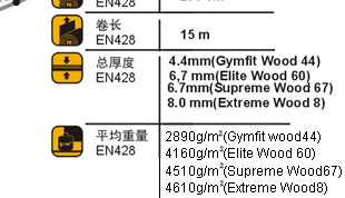 CLP的特殊處理,不僅大大延長了嘉寶運動地板的使用壽命,而且使之 更容易清潔。Grabo木紋系列的運動地板共有3種顏色和4鐘厚度 (8mm,6.7mm,6.0mm和4.4mm)可供選擇,可以滿足各種級別的籃球館 和室內運動場所的需求;4.4mm厚的為單發泡層結構,其余為雙發泡層 。